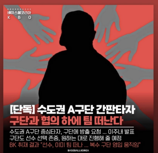 정말 사실이면 야구계의 큰 이슈가 아닐 수 없습니다. A구단의 간판타자인 B선수가 구단에 방출을 요청하였고 구단은 이 요청을 존중하고 상호 협의하에 절차를 밟게 될 것이라 하였답니다.