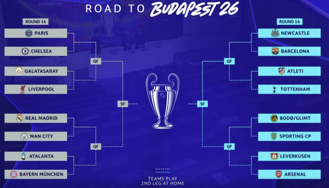 | 🔖 챔스리그 16강 대진표 확정! 과연 우승은 누가? |